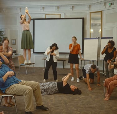 Exercices issus du théâtre pour développer la présence, l’écoute et la posture professionnelle.