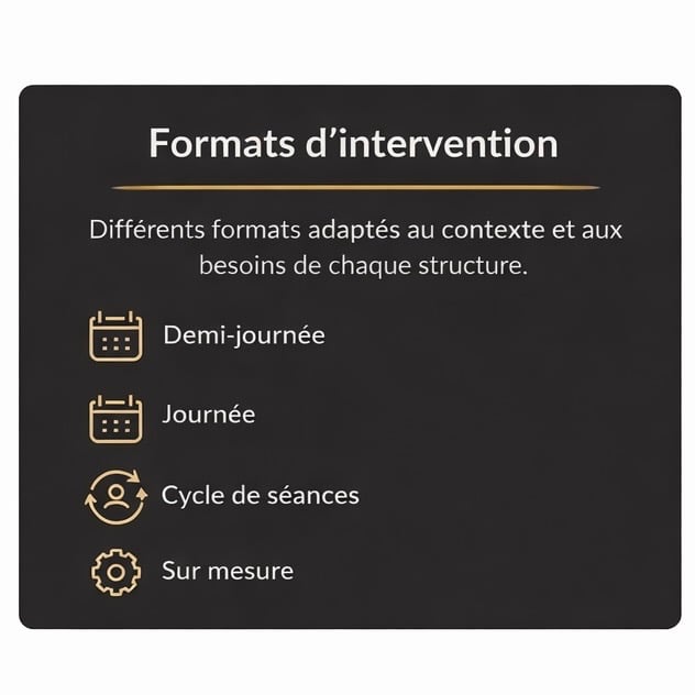 Chaque intervention est construite sur mesure, en fonction du public, des objectifs et du contexte de l’entreprise.